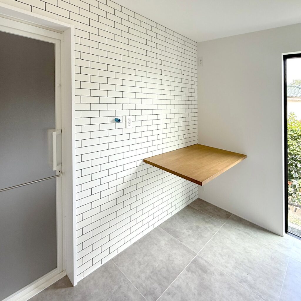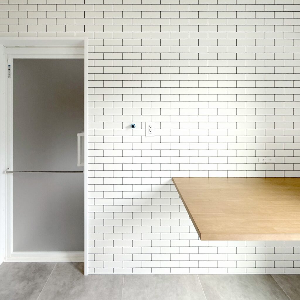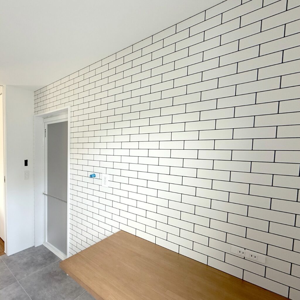 今回ご使用いただいた壁紙はスタイリッシュカラー100の「Y9083」とタイル「Y9357」です。