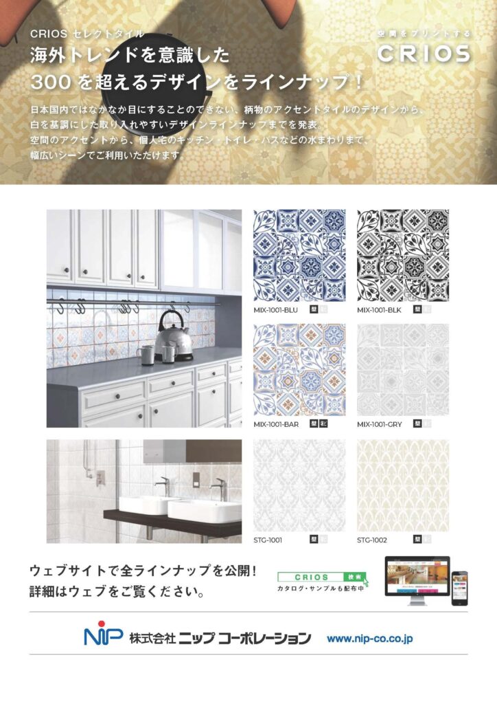 自立連結可能型のLEDデジタルサイネージの現物展示に加え、オーダーメイドのデジタル建材の一例として、塩ビタイルに出力施工を施した床面もご紹介いたします。